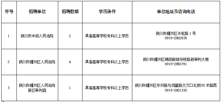 (四)如在招聘工作期間遇到因不可抗力因素等突發(fā)情況,由銅川市中級人民法院報請省法院研究決定是否暫緩招聘工作,并向社會發(fā)布公告。